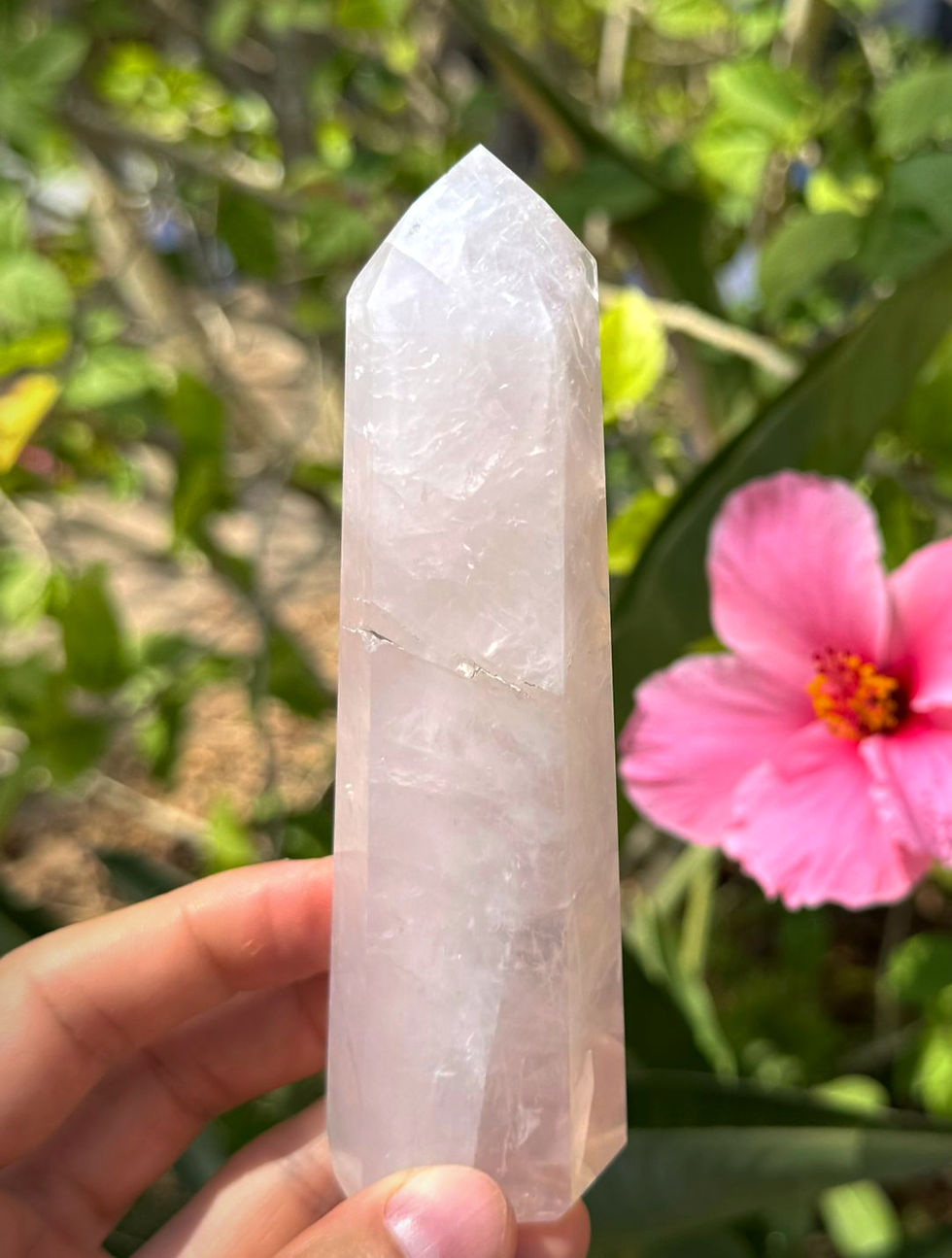 Der Rosenquarz, der Stein der Liebe und Besänftigung, fließt in sanften Rosatönen, von blass bis tief, seine halbtransparente Hülle birgt das Geheimnis von Frieden, verweht in der Weichheit seiner Form.